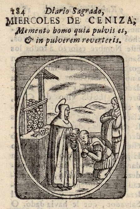 Fotos: Miniatura correspondiente al Miércoles de Ceniza. Atribuido a Cristoforo Orimina, Nápoles, h. 1370. Biblioteca Municipal de Avignon, Avignon (Francia). BM - ms. 0138. f. 040 v. Procedente de la Iglesia Colegial de Saint-Didier de Avignon. Imagen del Institut de recherche et d'histoire des textes - CNRS / Imposición de la ceniza, Pablo Minguet, 1749. En Pablo Minguet, "Diario sagrado, y kalendario general" (...). Madrid, Juan de Zuñiga, 1749. Biblioteca Nacional de España, Madrid.